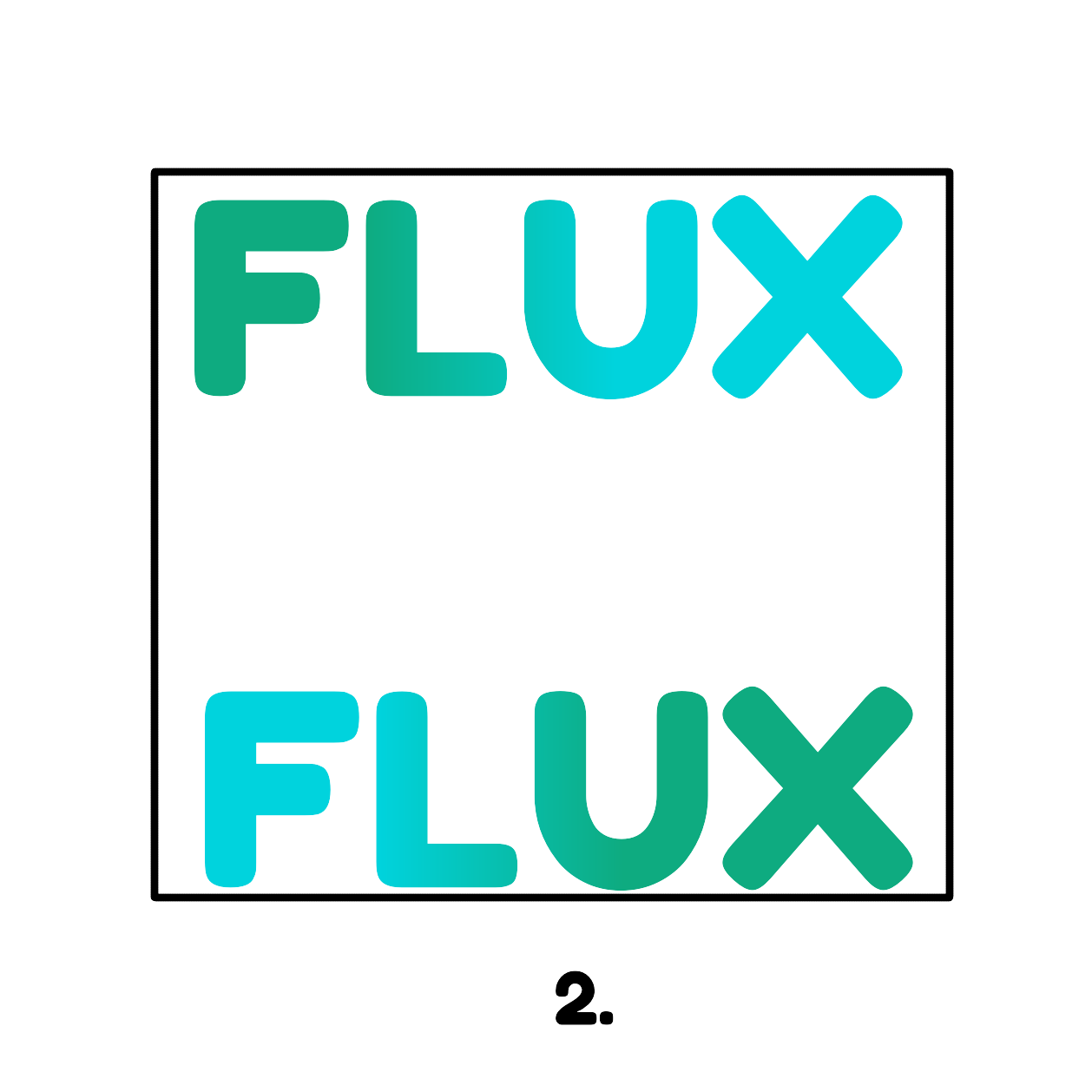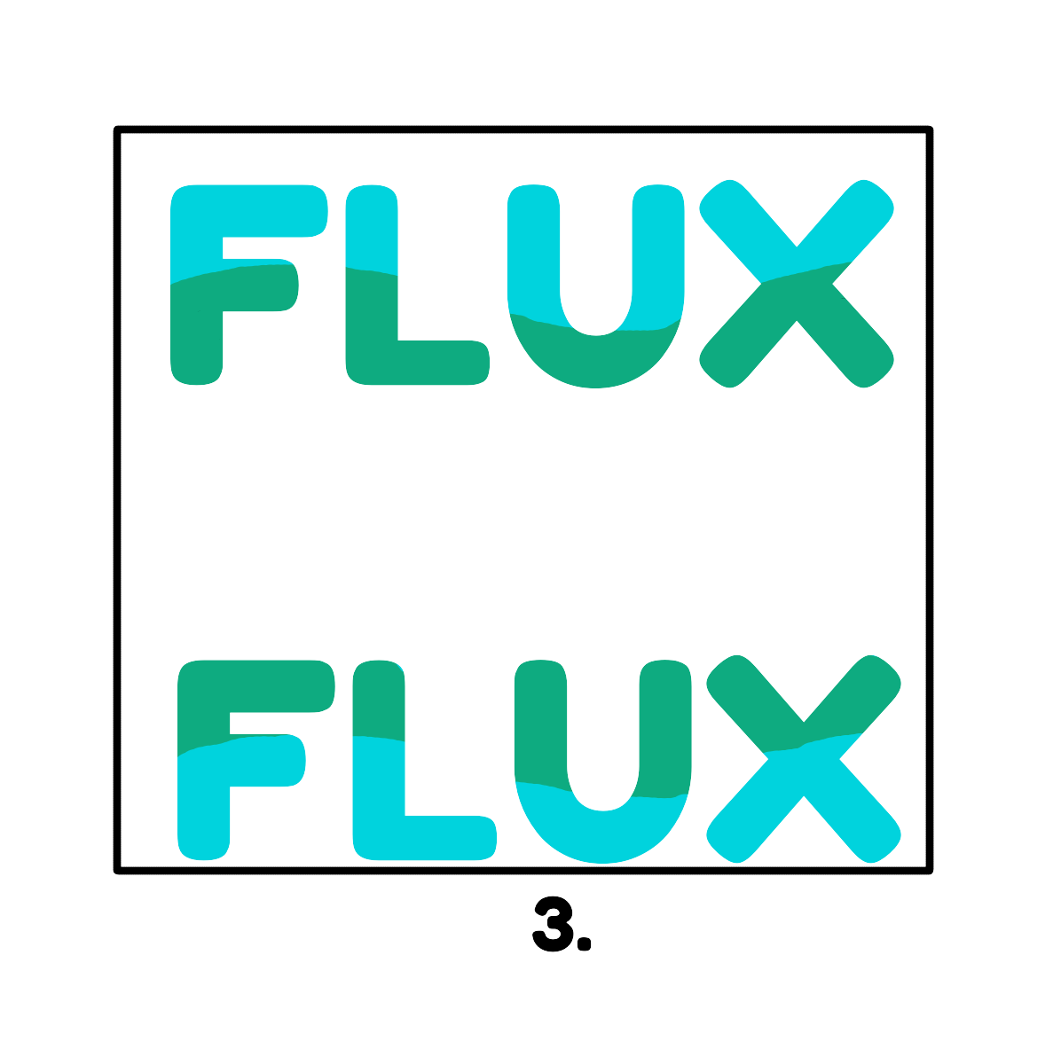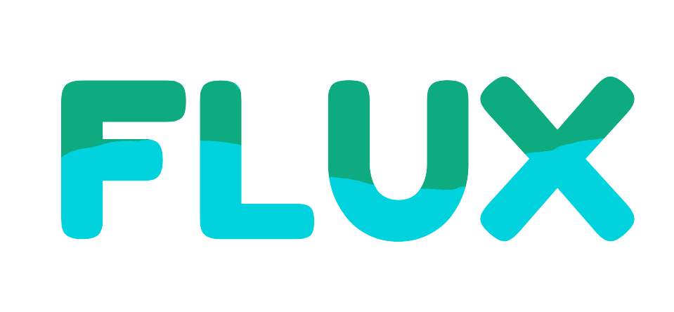 Each letter in FLUX is drawn with a bold, rounded shape to give a
