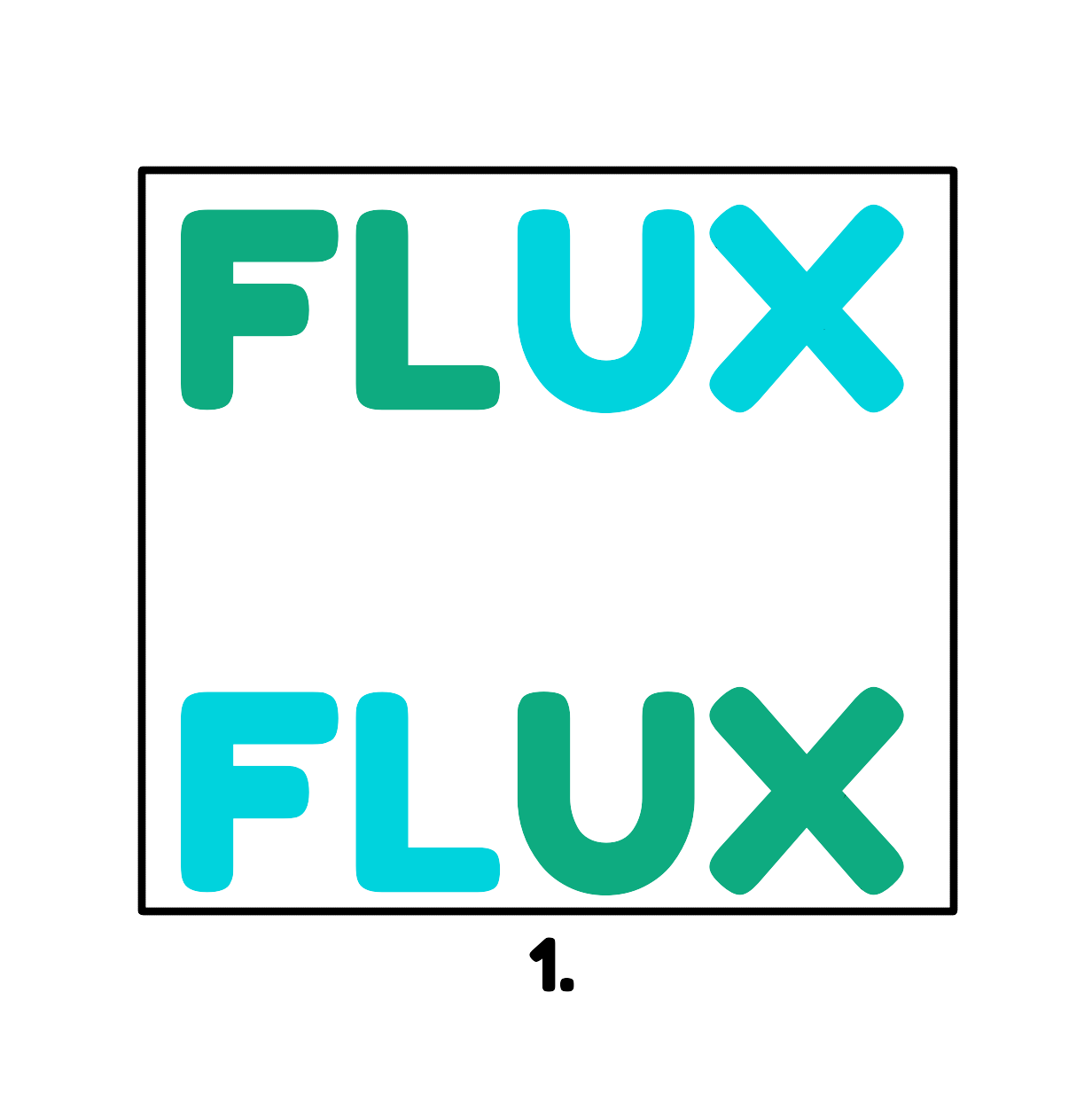 Each letter in FLUX is drawn with a bold, rounded shape to give a